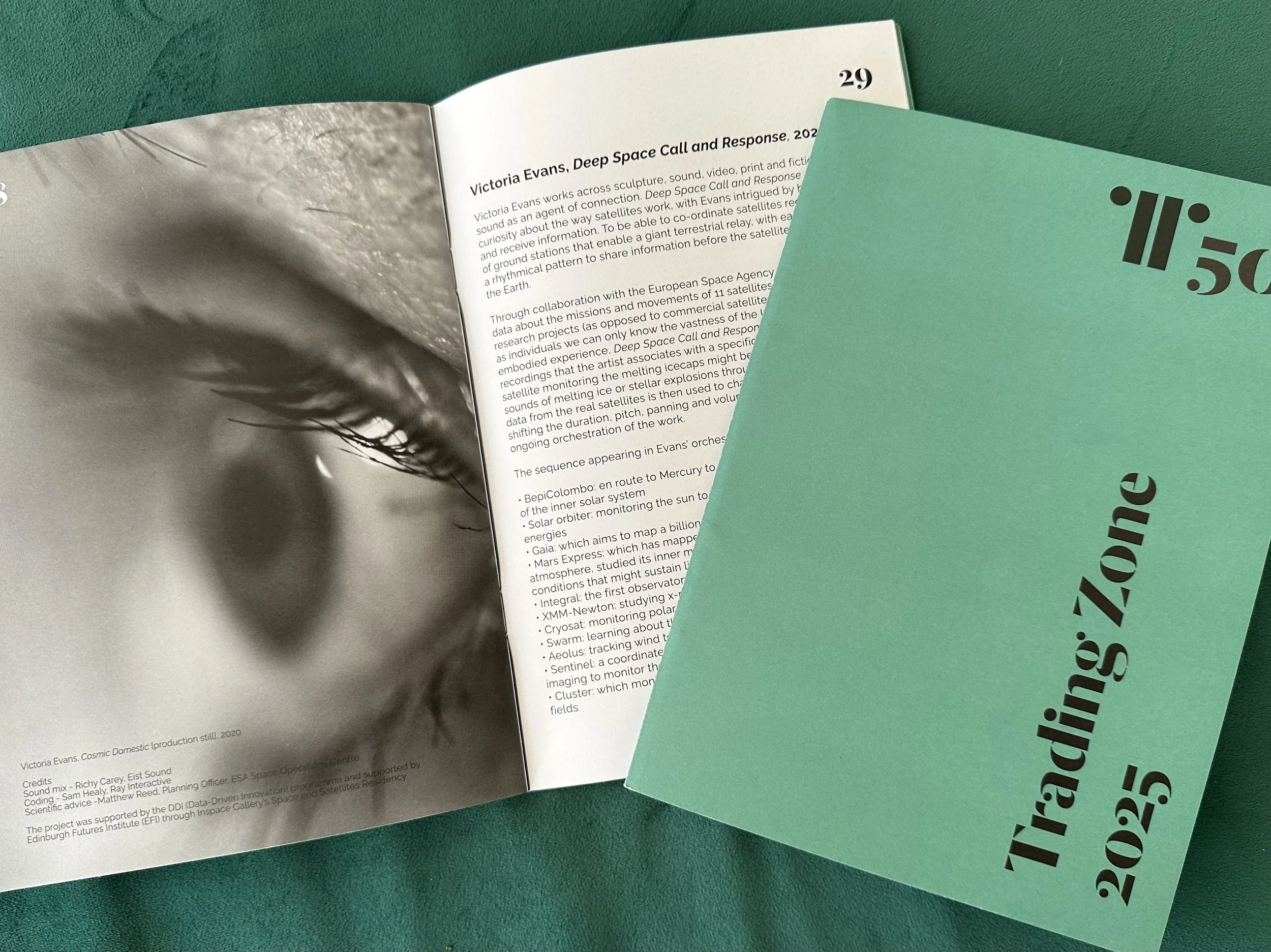 Deep Space Call and Response [2025] is a seven channel installation of my 2023 sound composition. The new mix was commissioned by Talbot Rice Gallery as part of interdisciplinary group exhibition Trading Zone 2025. The twelve and a half minute composition uses orbital data from 11 European Space Agency satellites to trigger and modulate sound samples based on recordings from my own domestic environment.
