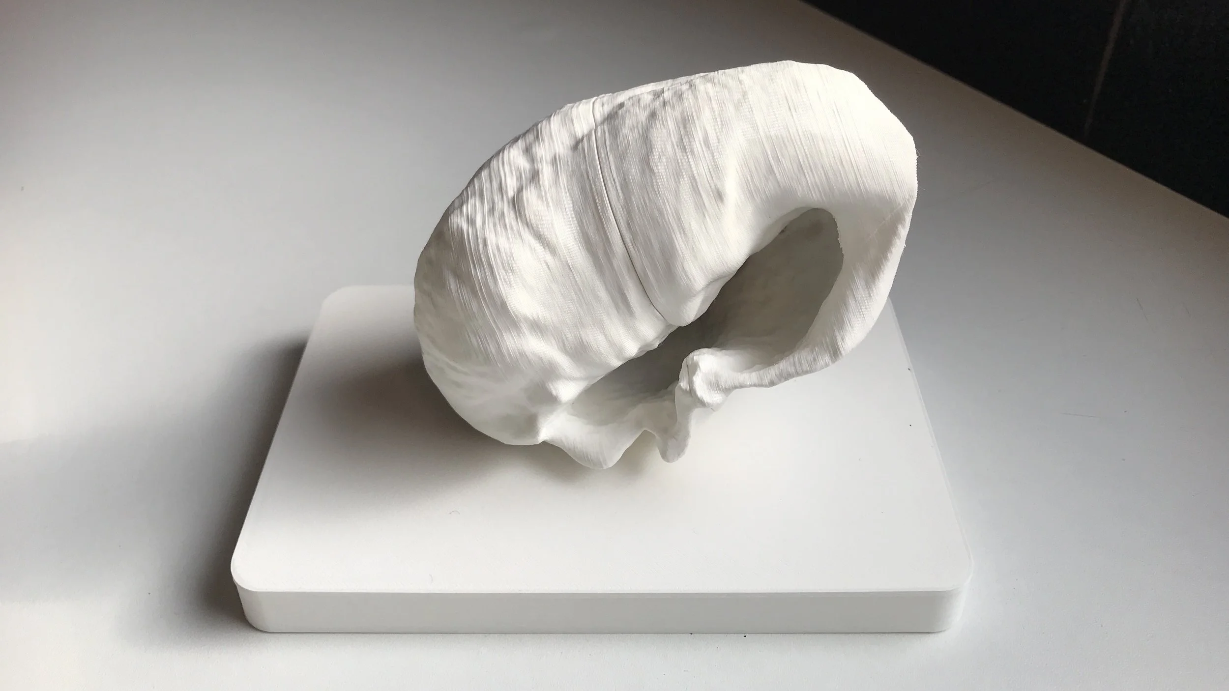 It takes the form of a rapid-prototyped, hand held, 3d printed, rechargeable speaker in the shape of a whale ear bone and was developed in collaboration with technologists Marko Radeta and João Pestana during Victoria Evans’ three month SGSAH funded artist residency at MARE marine research centre in Madeira.